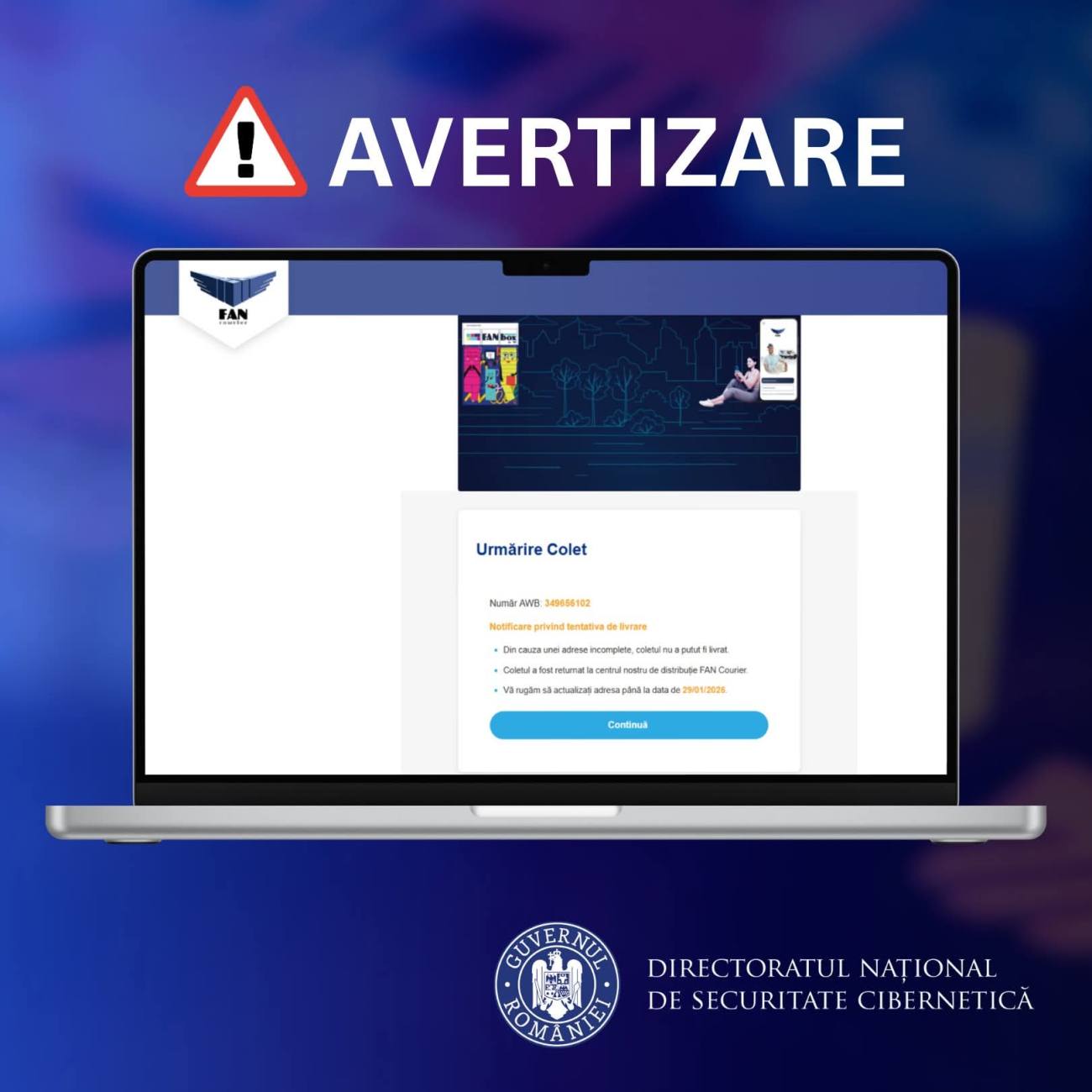 Autoritățile recomandă utilizatorilor să nu acceseze link-uri din mesaje suspecte și să fie atenți la denumirea site-urilor pe care le vizitează, deoarece acestea pot avea o denumire similară, dar ușor modificată (ex: fancourier[.]lol). Este indicat să verifice datele coletului pe site-ul oficial, având în vedere că codul de identificare (AWB) ar putea fi inexistent.