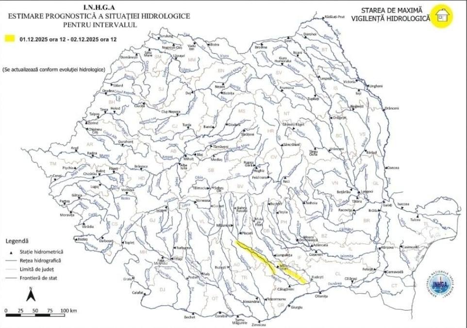 Institutul Național de Hidrologie și Gospodărire a Apelor a emis o nouă avertizare hidrologică cod galben pentru această perioadă. Atenționarea vizează o creștere a debitelor și nivelurilor apelor, cauzată de propagarea viiturilor formate anterior în amonte. Se semnalează posibilitatea depășirii cotelor de apărare pe anumite râuri.