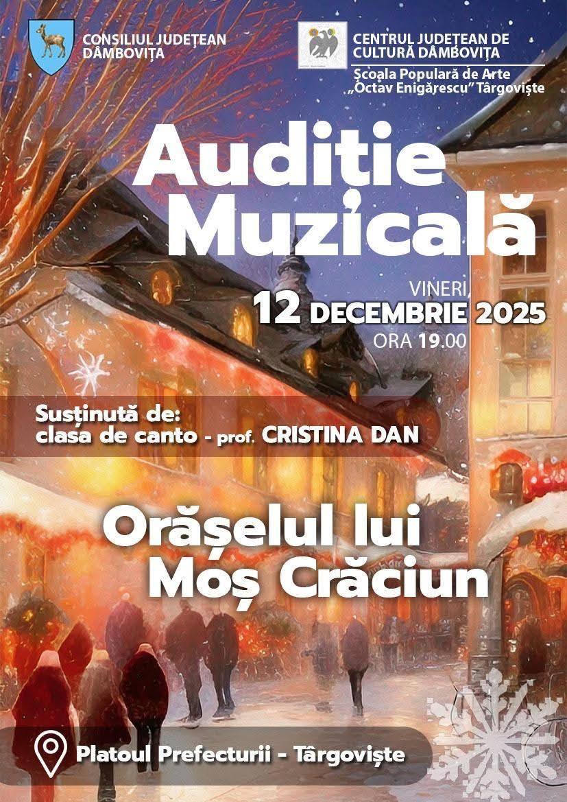 Pe 12 decembrie 2025, pe scena „Orășelului lui Moș Crăciun” din municipiul Târgoviște, Clasa de Canto a Școlii Populare de Arte „Octav Enigărescu” a oferit o audiție muzicală. Evenimentul a fost coordonat de profesoara Cristina Dan și a atras aplauze din partea publicului prezent, notează %source%.