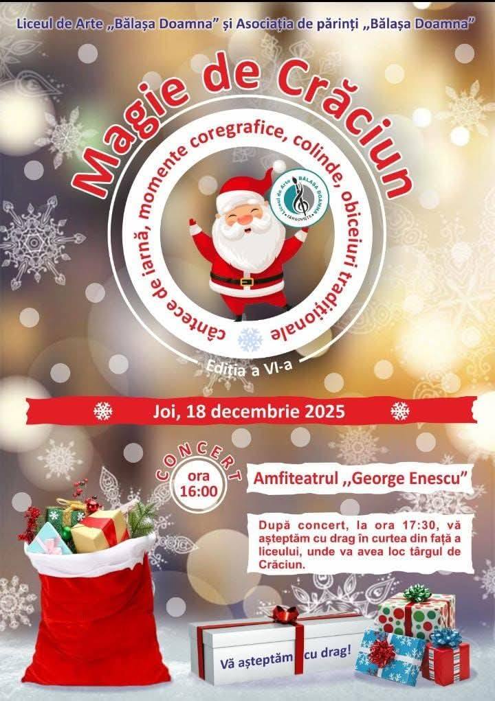 Pe 18 decembrie, Liceul de Arte „Bălașa Doamna” din Târgoviște pregătește o zi plină de evenimente dedicate sărbătorilor de iarnă. Evenimentele încep cu concertul „Armonii de Crăciun”, susținut de elevii liceului în Amfiteatrul „George Enescu”, de la ora 16:00.