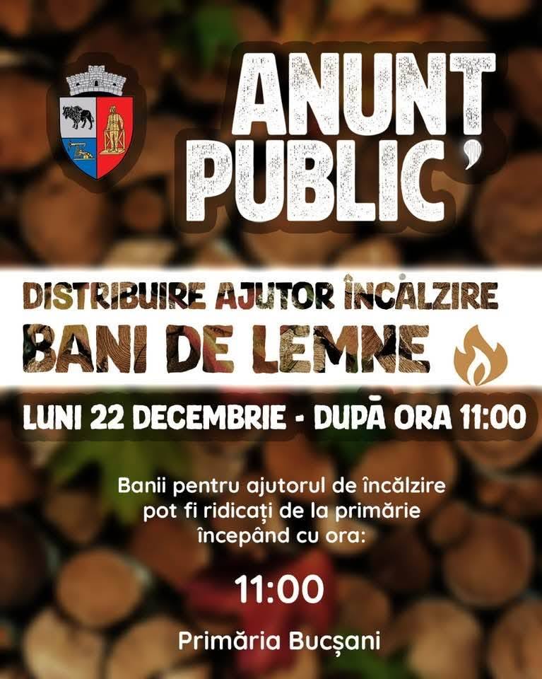 Beneficiarii au la dispoziție o fereastră clară pentru a ridica sumele dedicate pentru încălzirea locuințelor cu lemne, începând cu ora 11:00, în ziua de 22 decembrie. Ajutorul este acordat direct la sediul Primăriei Bucșani, eliminând astfel necesitatea altor intermedieri.