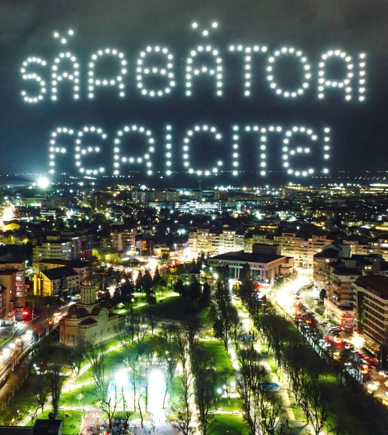 Târgoviște a dat startul sărbătorilor de iarnă cu un spectacol inedit de drone și artificii