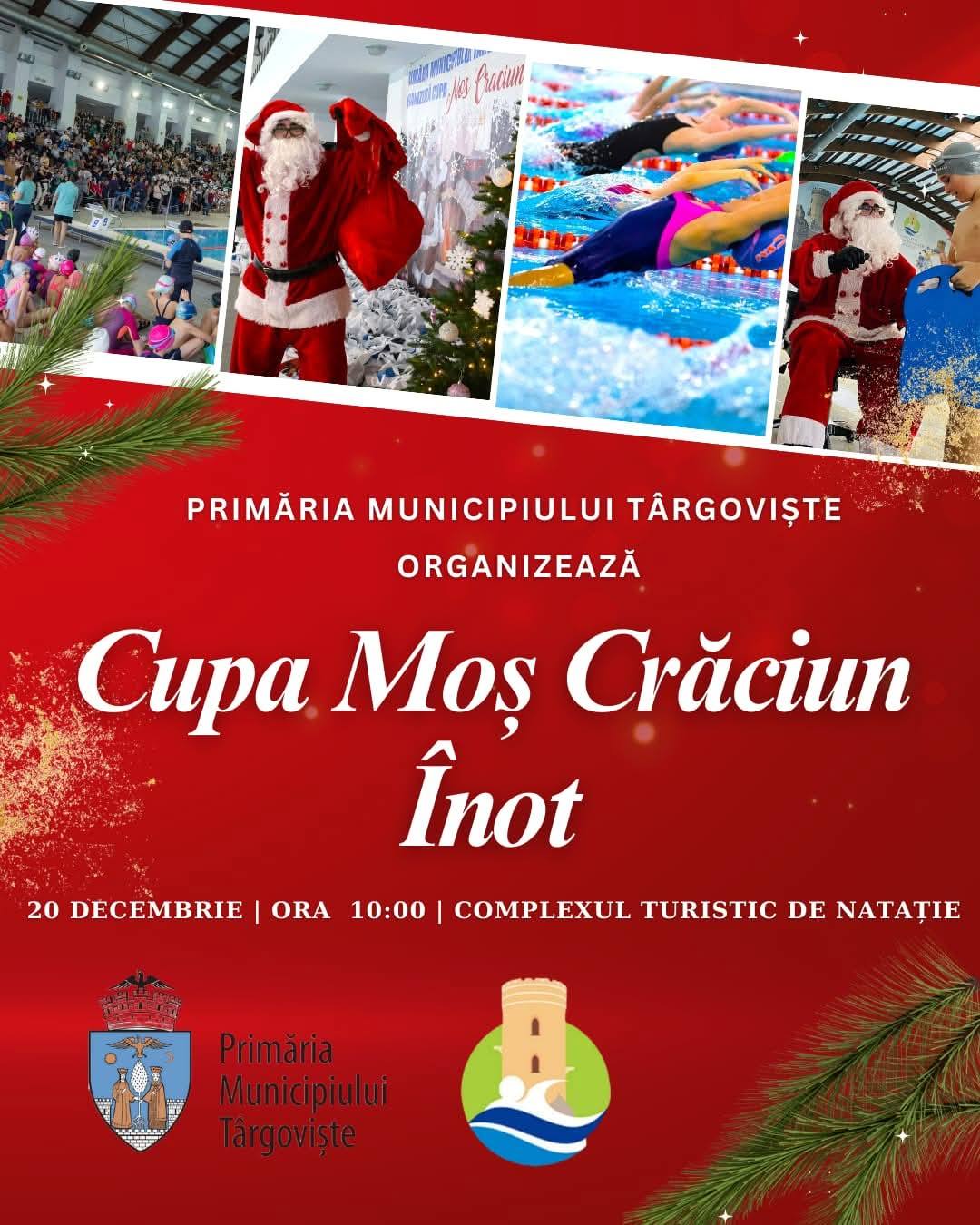 Pe 20 decembrie, de la ora 10:00, bazinul olimpic din Complexul Turistic de Natație din Târgoviște va fi locul unei noi ediții a „Cupei Moș Crăciun”, una dintre cele mai iubite întreceri sportive de iarnă, organizată de Primăria Municipiului Târgoviște. Evenimentul promite o atmosferă plină de energie, sport și voie bună.