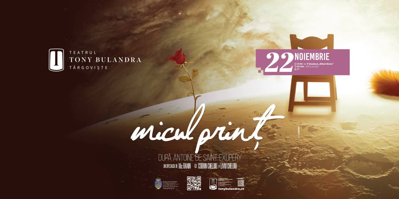Teatrul Tony Bulandra din Târgoviște invită publicul să vadă spectacolul „Micul prinț”, o poveste despre un copil care încearcă să înțeleagă lumea din jur. Piesa urmărește călătoria imaginară a personajului prin diverse lumi, fiecare locuită de un personaj cu trăsături aparte.