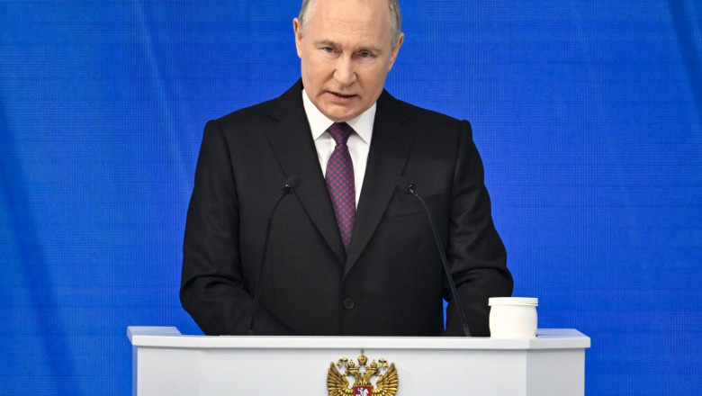 Dicatatorul rus, Vladimir Putin, a adresat astăzi parlamentului rus dinamurile sale înaintea alegerilor ce vor reconfirmă conducerea sa pentru încă șase ani. Mesajul său a fost puternic mediatizat și a fost transmis în cinematografele din 20 de orașe rusești precum și în direct pe canalele federale de televiziune. De asemenea, a fost organizată o transmisiune pe ecranele stradale din marile orașe.