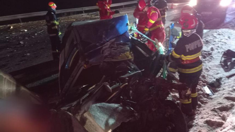 FOTO. Accident în Suceava: un bărbat mort, altul rănit în ciocnirea dintre maşină şi camion pe centură