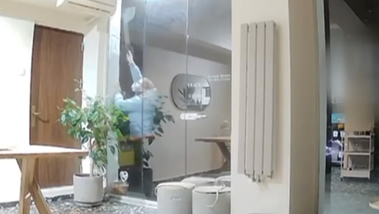 Neurolog drogat încearcă să spargă cafenea cu macetă în București, surprins de camerele de supraveghere