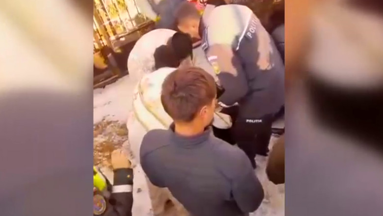 Polițiștii au intervenit calm și au reușit să-l mute pe preot de la poarta cimitirului, astfel încât ceremonia funerară să poată continua.