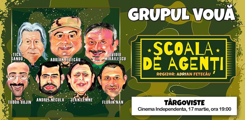 Publicul din Târgoviște este rechemat să participe la o seară dedicată umorului pe 17 martie 2026, de la ora 19.00, când Grupul Vouă va prezenta spectacolul „Școala de agenți” la Cinema Independența. Evenimentul promite să fie o experiență memorabilă, potrivită pentru toate vârstele, conform datelor furnizate de organizatori.